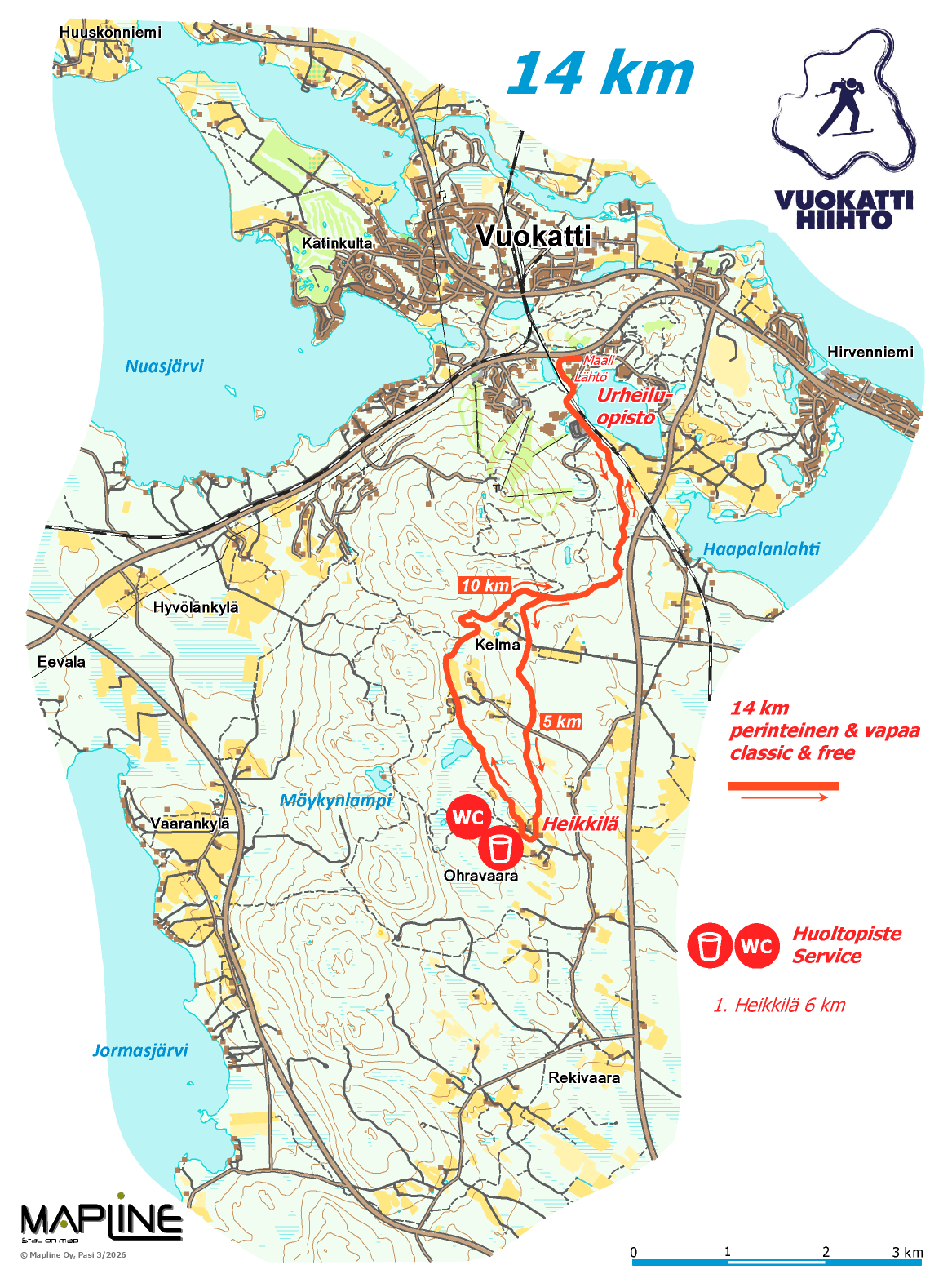 10.30 – 14 km classic and free (bus transportation to start place at 10.00 from Vuokatti Areena)